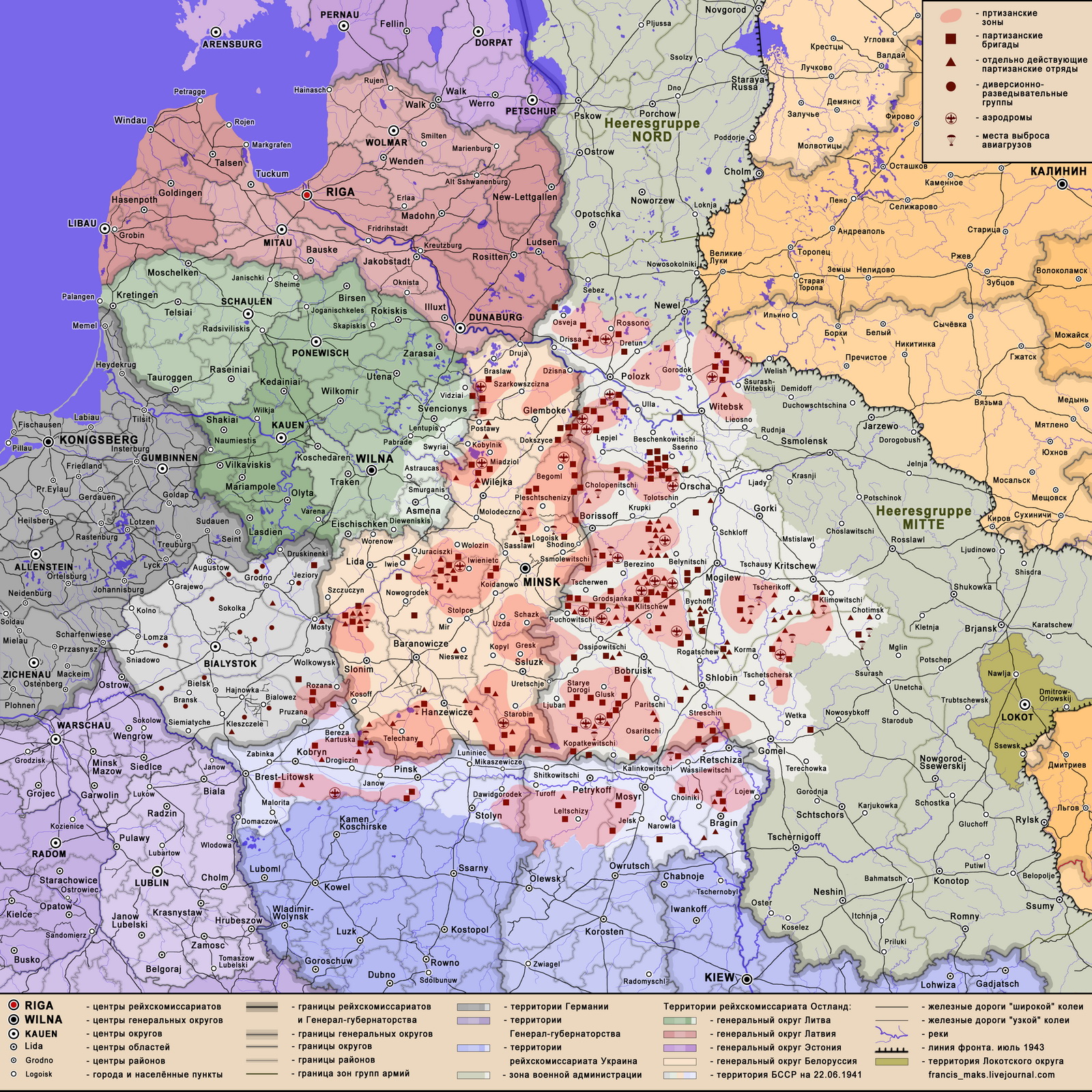 - Karte auf der Basis: Партизанское Движение, bei Большая российская энциклопедия 2004–2017, online unter https://old.bigenc.ru/military_science/text/2322156. Vgl. http://ic.pics.livejournal.com/francis_maks/19122129/64019/64019_original.jpg